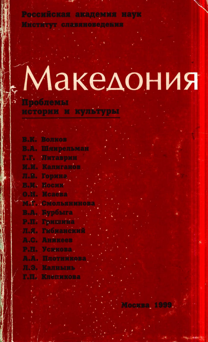Македония: проблемы истории и культуры. М.: Институт славяноведения РАН, 1999 Редколлегия: В. К. Волков, Г. Г. Литаврин, И. И. Калиганов, Г. П. Клепикова