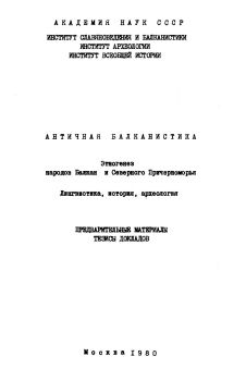 Симпозиум Античная балканистика. Этногенез народов Балкан и Северного Причерноморья. Лингвистика, история, археология. 2-4 декабря 1980 г. Предварительные материалы. Тезисы докладов. Москва, 1980. Редакционная коллегия: С. Б. Бернштейн, Л. А. Гиндин, Е. С. Голубцова, А. И. Мелюкова, В. Э. Орел