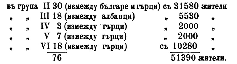 Значи, изобщо въ турска и гръцка областъ има 154 чисто аромѫнски села, отъ които само 49 по Аспропотамосъ не съмъ посѣтилъ, но съ жителитѣ имъ се запознахъ въ зимнитѣ имъ жилища изъ Тесалия. По-голѣмитѣ