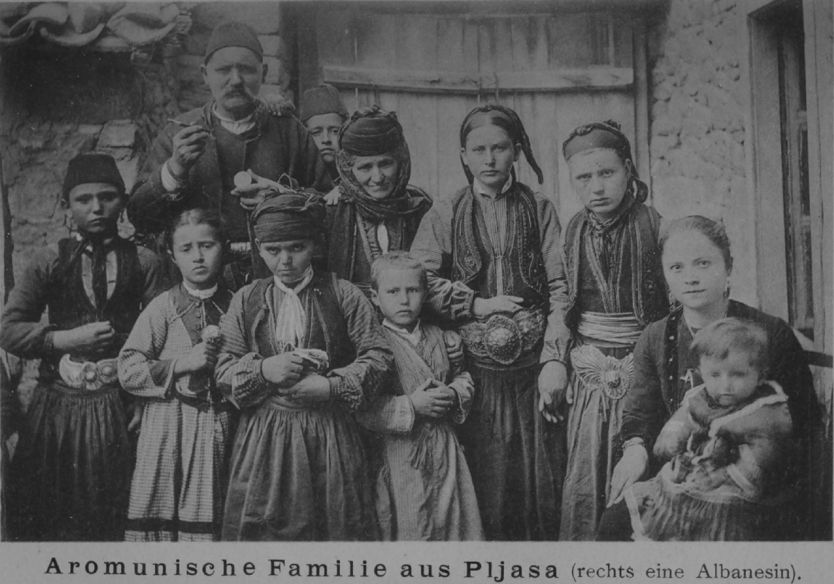 5. Аромѫнско семейство отъ Пийаза (отдѣсно една албанка) // aromunische Familie aus Pljasa (rechts eine Albanesin)