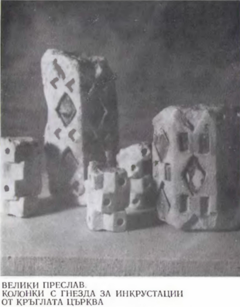 - Велики Преслав. Колонки с гнезда за инкрустации от кръглата църква