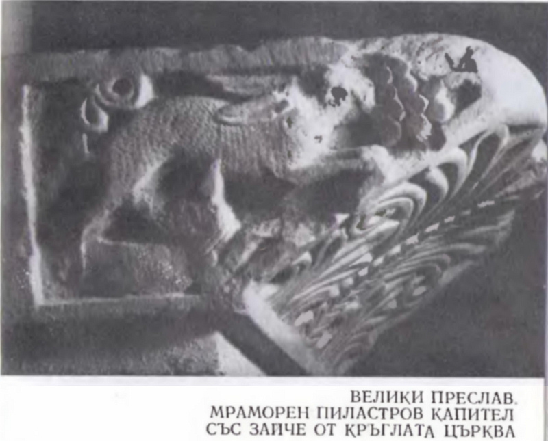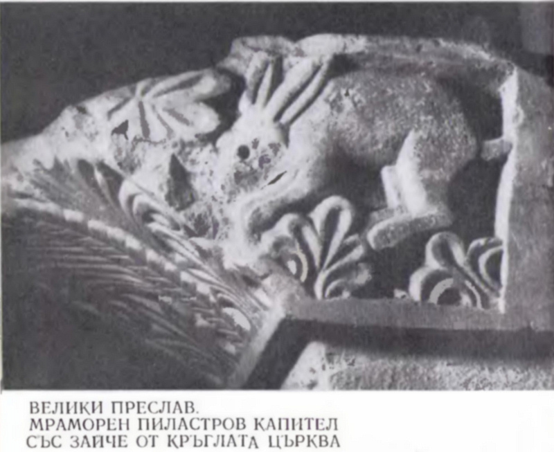 - Велики Преслав. Мраморен пиластров капител със зайче от кръглата църква