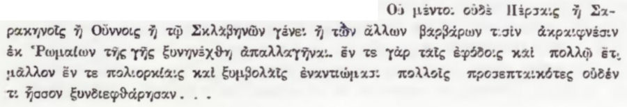 „Не се удаде обаче да бъдат изгонени из земята на ромеите — пише Прокопий [26] — нито персите, нито сарацините или хуните, или племето на славяните или някои племена от другите варвари.”