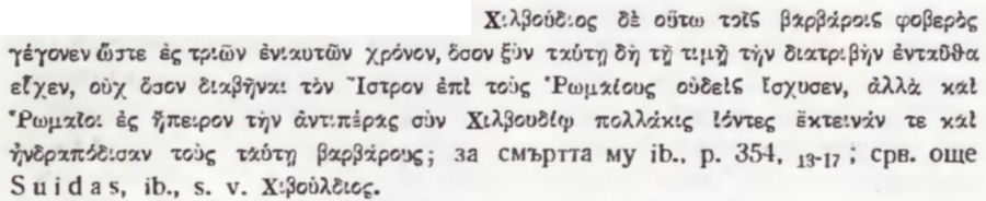 145. Вж. Malalas, ib., p. 490,6-8. ... ἐπανέστησαν οἱ Οὗννοι καὶ οἱ Σκλᾶβοι τῇ Θρᾴκῃ ... ; същото y Theoph., ib., p. 233,3-6 ; y Cеdr., I p. 677, очевидно погрешно : οἱ οὗννοι οἱ καὶ Σκλαβῖνοι, вм. καὶ οἱ Σκλαβῖνοι; за другите извори и за датата срв. у Niederle, SS, ib., pp. 200 n. 1; 199, n. 5. Обаче най-подробният извор — Agаthiаs, Hist., ed. Dindorf (HGM, II), p. 364, 28 sqq., не споменава за славяни. За участието на славяните срв. и Дринов, п. с., с. 243 сл.