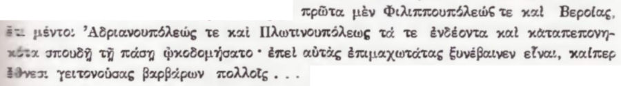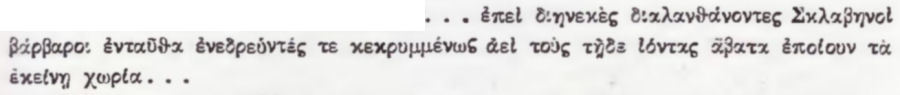108. Proc., De aed., p. 144,19-20, съобщава, че градът οὐ πολλῷ ἕμπροσθεν бил зает от славяните. Нападателите следователно изоставили града, а това показва, че те още не са желаели и не са могли да се поселят по беломорското крайбрежие, както смята Успенский, п. с., с. 467.