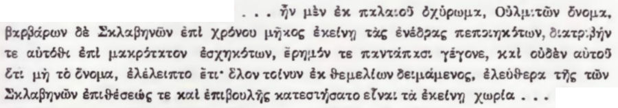 Дори и да се изхвърлят някои от тези имена като съмнителни, все пак остават другите, чиито славянски облик е неотречим. В такъв случай би трябвало да се приеме, че към 558 г., когато е било съставено съчинението Περὶ κτισμάτων (вж. за датата Krumbacher, op. c., p. 232), а не по-рано (както мисли Niederle, SS, ib., p. 179), на полуострова е имало славянски селища. Може да се припомни, че по времето на Юстиниан по балканските земи е имало поселища на кутригури, лонгобардн, гепиди, готи, херули (вж. указанията на изворите у Станојевић, О јужним словенима, с. 137 сл.)