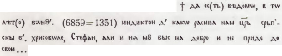 40. За това посещение вж. у Иванов, п. с., с. 543 бел. 1. Датата е ясно посочена: 6859 = 1351 г. Такова посещение не е известно, а се знае за посещението в края на 1347 и началото на 1348 г. ; Вл. А. Мошин — М. А. Пурковић, Хиландарски игумани средњега века (Скопље 1940), с. 72 сл. ; вж. също Т. Флоринский, Южные славяне и Византия во второй четверти XIV века, II, СПб. 1882, с. 121 сл., 134 сл. Кралят и кралицата прекарали в Света гора около четири месеца. Дали не трябва датата ѕѡнѳ' (индикт д') да се поправи на ѕѡнз' (6856 = 1348 г.) индикт а'?