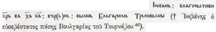 Лъв VI Мъдри (886—912), Иван Търновски и Стефан Душан. Подписът на българския владетел гласи: