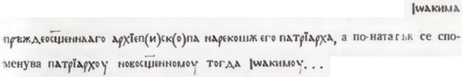 В този домашен паметник не се дава прочее никакво посочване, че преди 1235 г. Йоаким е бил самоволно издигнат за български патриарх, а се посочва само, че до това време той е бил