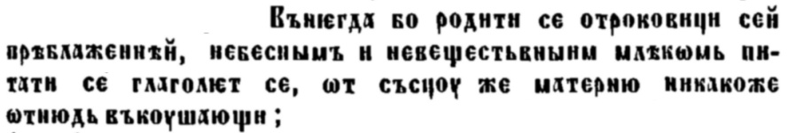 (вж. Баланъ, п. с., с. 30, 17—19) и това станало по божие усмотрение, та „добрата издънка отъ добрия коренъ да бѫде изкърмена съ чисто млѣко" (вж. тукъ, сс. 7—8). Сѫщата обща мисъль, засилена още повече, намираме въ възхвалата на св. Филотея, писана отъ видинския митрополитъ Иоасафъ:
