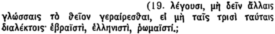 Рускиятъ ученъ изтъква, че на този неправиленъ преводъ е построенъ цѣлиятъ разказъ за спора и поради това той смѣта, че този разказъ не е могълъ да сѫществува на гръцки езикъ, гдето текстътъ е напълно ясенъ. Обяснението, обаче, на този текстъ може да бѫде и по-друго. Думитѣ οὐδὲ παντὸς ὁμοίωμα могатъ на гръцки езикъ да се тълкуватъ двуяко : когато се взематъ отдѣлно отъ текста, който следва следъ тѣхъ (παντὸς ..., ὅσα ἐν τῷ οὐρανῷ...), тогава тѣ наистина могатъ да означаватъ: „не си прави подобие (ὁμοίωμα) на всичко (παντός)", значи на каквото и да е, безразлично дали е достойно или недостойно. Когато παντός се тълкува така откѫснато, то може да значи παντοίου и да бѫде използувано като запрещение да се правятъ безразборно всѣкакви подобия, след., като позволение да се създаватъ „достойни". Така откѫснато го тълкува