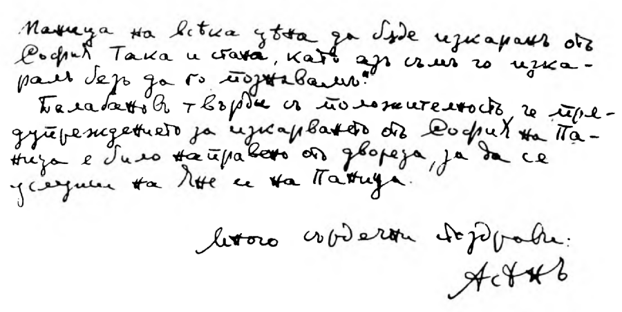 Това писмо е дадено цѣлостно, за да се види и самия подписъ на проф. Ал. Цанковъ, което не е безъ значение съ огледъ на евентуално оспорване отъ страна на заинтересовани.