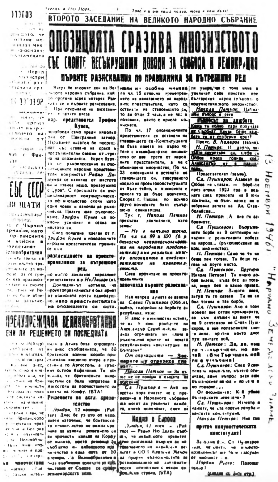 (Извадка отъ в-къ „Народно земедѣлско знаме" (ноемврий 1946 г.))