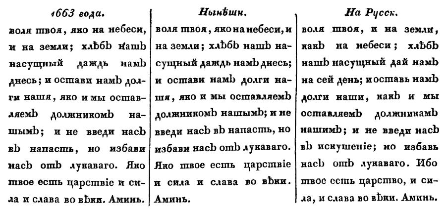 «Когда я Словенскаго языка древность и чистоту въ Россійскихъ нѣдрахъ храниму быти «сказую»—свидѣтельствуетъ Раичь (16)—«не говорю то, акибы нынѣшній Великороссійскій или Малороссійскій языкъ (17) чистѣйшій и старинный былъ: діалекти бо суть, якоже и прочіи; но есть въ Россіи и другій особенный, чистый, называемый своимъ именемъ, языкъ Словенскій, который во общемъ разговорѣ не употребляется, но есть точію церковный, и священная писанія ово за славу, чистоту и древность языка, овоже за славу Божія слова (тако, якоже Еврейскій и Еллинскій) и вся церковная пѣнія и молитвы на немъ печатаются, яко да вси обще уразумѣти могутъ. Чего паки примѣръ сушь Русси, Поляки, Серби, Болгари, Хорваты и прочіи, которіи прилѣжно чтуще оная, разумѣютъ.»