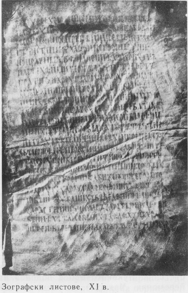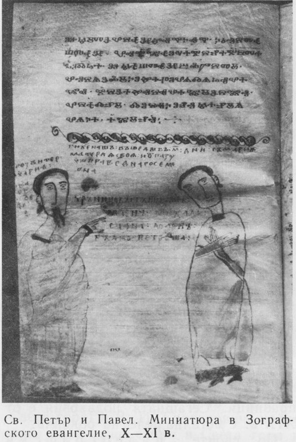 (14). ЗОГРАФСКО ЕВАНГЕЛИЕ — един от най-старите старобълг. паметници, които са оцелели до наши дни. Написано е върху пергамент с глаголица навярно към края на X в. или през първата половина на XI в. Наречено е по името на Зографския манастир в Света гора, чието притежание е било. През 40-те г. на XIX в. за съществуването му са знаели Неофит Возвели, А. Миханович (австрийски консул в Цариград, който през 1843 посещава Света гора) и В. И. Григорович, който през 1844 също е бил в Света гора и чрез Неофит Возвели се е мъчил да вземе и да отнесе със себе си ръкописа. През 1860 бълг. монашеско братство връчва паметника на П. И. Севастианов като дар за руския имп. Александър II (1855—1881). Евангелието е било предадено в Императорската публична библиотека в Санкт Петербург (дн. Държ. публична библиотека „М. Е. Салтиков-Шчедрин“ в Ленинград), където се намира и сега (сигнатура: глаг. 1).