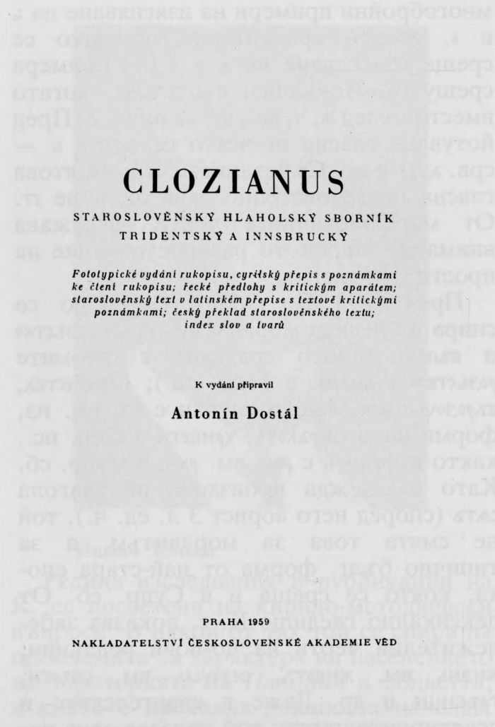 · Studia palaeoslovenica. Sborník studii věnovaných k sedmdesátinám Univ. prof. Dr. Josefa Kurze, DrSc. Praha, 419 p.;