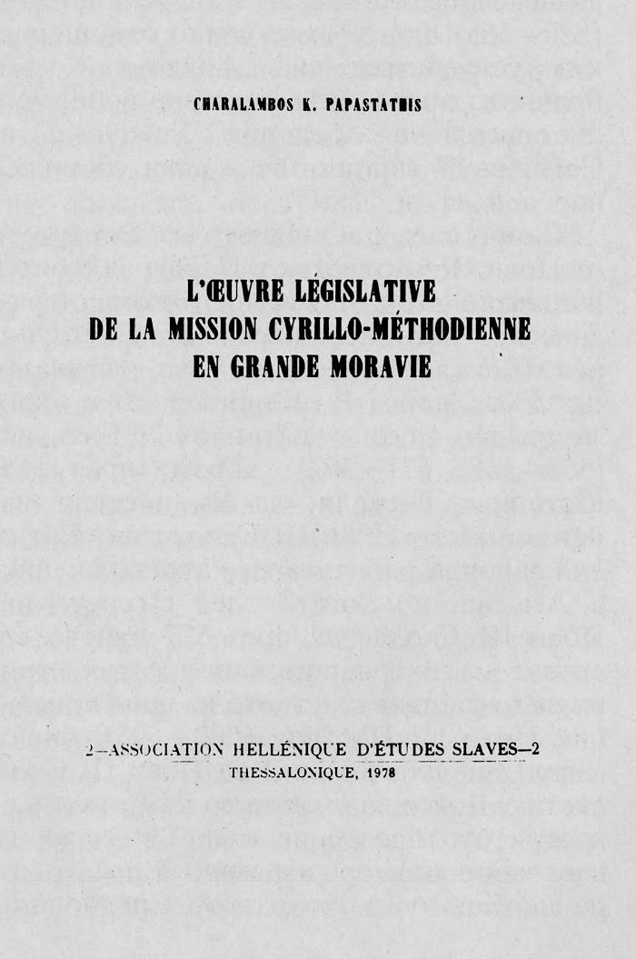 · Παπαστάθη X. К. То νομοθετικόν εργον τῆς κυρίλλομεθοδιανής ιεραποστολής εν Μεγάλη Μοραβία. Θεσσαλονίκη, 1978, 142 р.;