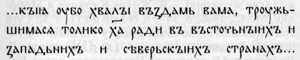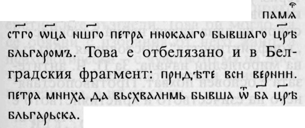 ати за съпьсати (Супр. сб. 54.16); в Сав. кн. кръстовидната буква е употребена само в припискат на л. 51а (по изд. на В. Н. Шчепкин) — поп̑ сава