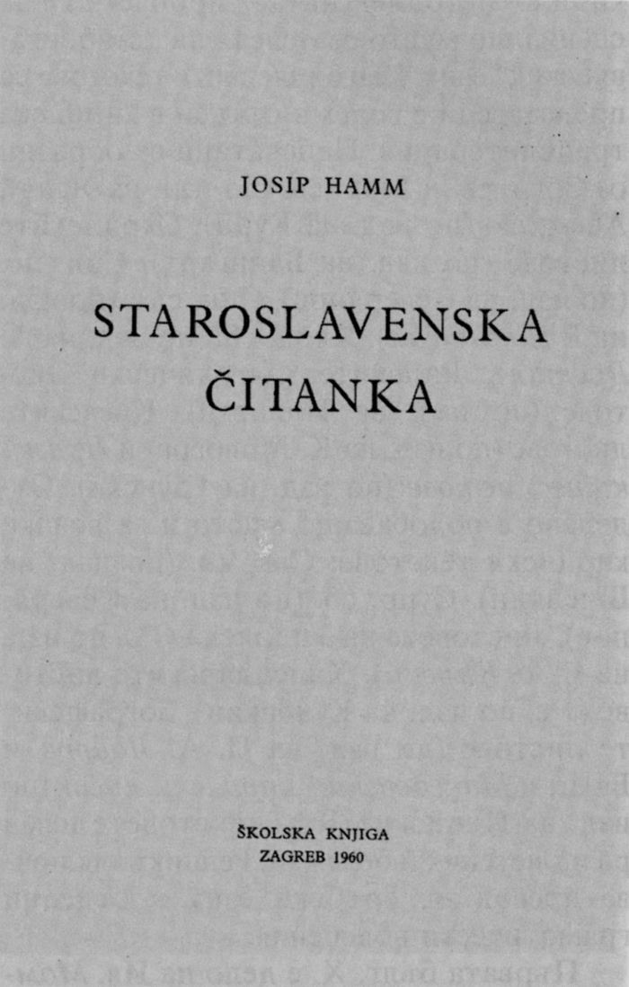 · Hamm J. Staroslavenska čitanka. Zagreb, 1960, 160 p. Рец.: Nazor A., D. Brožovi ć. — Slovo, 11—12, 1960, p. 219—225; Djamo L. — Rsl, 8, 1963, p. 534—535,