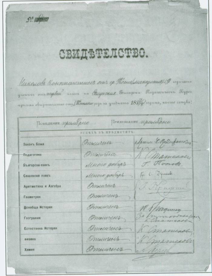 Така изглежда свидетелството на К. Николов за завършен курс на обучение