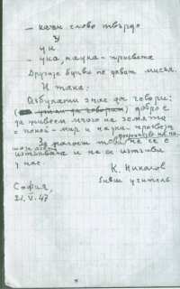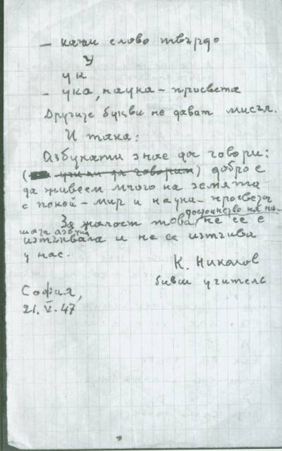 Факсимилие от тълкуването на нашата азбука, датирано 21 май 47
