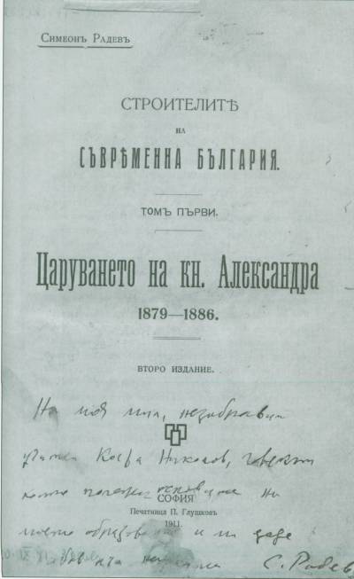 Посвещението на Симеон Радев гласи: "На моя мил, незбравим