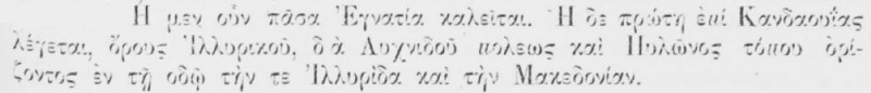 Между туі нека да разгледаме тук каква е вероіатноста на горното Hahn-ово твърденіе и на основаніе известиата за пътіа, що ги намираме и у други писатели. Спомени за посоката на пътіа ни оставили и некои латински писатели, (Tafel. De via Egnatia p. V и VI); но, тъі като те, поради сухоста си малко могат да ни послужат во този случаі, то за това се обращаме направо към незначителната част от запазените известиа на ритора Малха Филаделфиеца, понеже в них съгледваме указаниа, които и ще ни служат при опроверженіето на приведеното установено вече мненіе в науката.