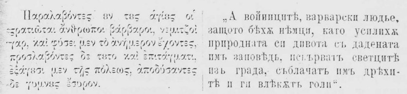 *. Тук почтениіа пѫтешественик съвсем противоположно сфанал деіствителноста. Колониа тоже да бъде гръцка, което впрочем сигурно можем да кажем, че не съществува. Пр.