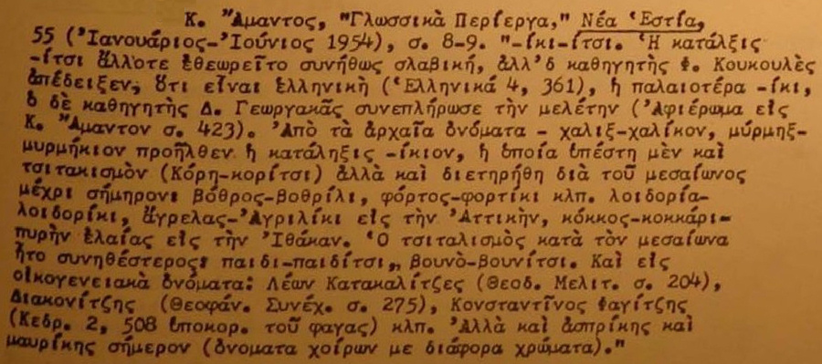 89. Κ. Ἄμαντος, "Γλωσσικὰ Περίεργα," σ. 9.