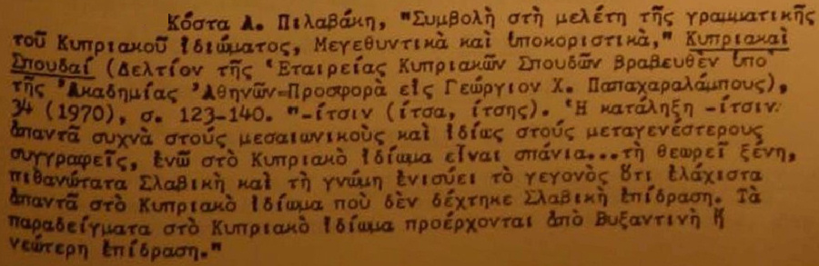 Vasmer to be free of the same. In Cyprus, which was, in fact, never during the Middle Byzantine Era settled with Slavs, the "ίτζα" ending is a late and very rare phenomenon. [98] This is as it should be were the formant imported from the Slavic by means of the Greek and not a natural development of Greek itself.