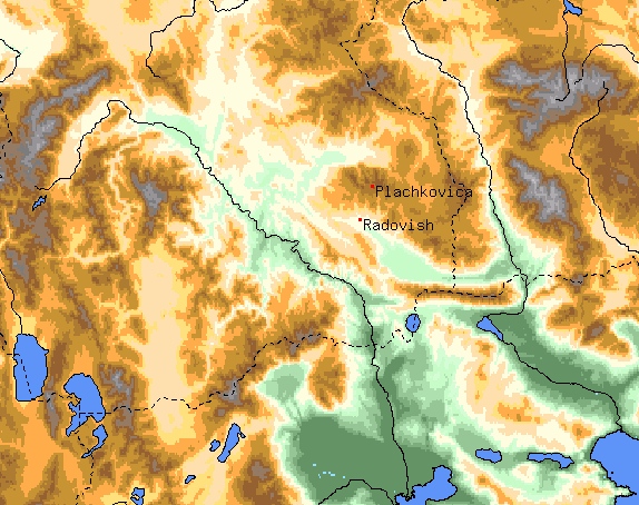 Тревата край зеленчуковите градини край Радовиш е още мокра от утринната роса. Леки изпарения се носят над реката, и водениците, прихлупени, се сивеят между върбите. Нагоре из дефилето, от двете страни на склоновете на планината, се виждат всред зеленината на тополи широките стрехи на тъмни, вехти къщички.