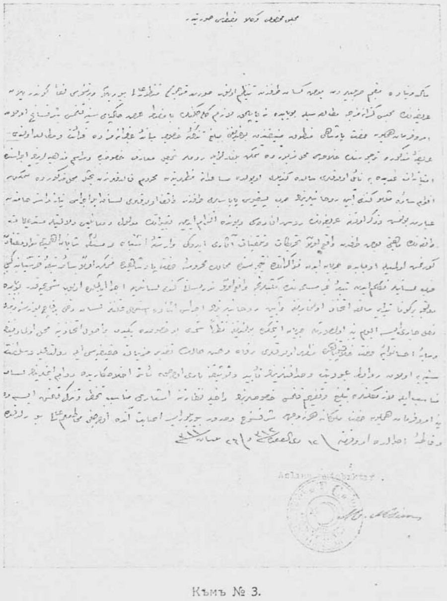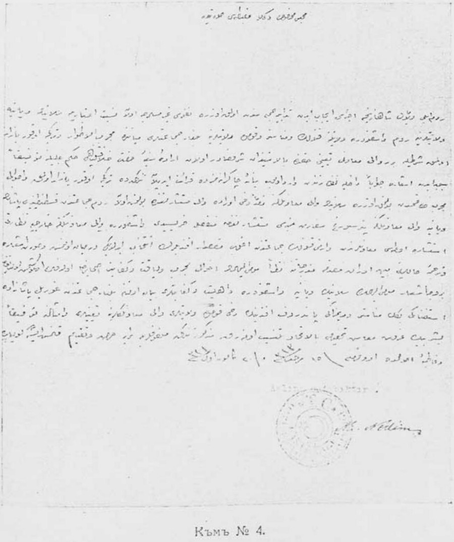 Моля да доложите на Негово Величество, че падамъ на земята предъ Негово Величество и моля да се издаде Султанска заповѣдь въ горния смисълъ.
