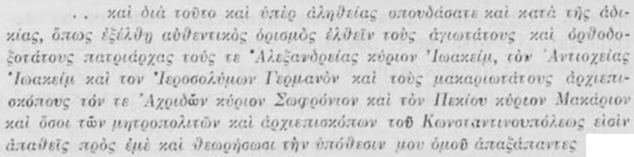 [4]. P. превежда: Tu (патриархътъ) as éléve des taxes et de redevances à un tel degré cue је не sais que te dire... (стр. 287). Наистина глаголътъ ἀνέβασες e II л. и сочи на лицето, къмъ което се обръща архиеп. Софрокий, сир. цариградския патриархъ. Но трѣбва да се отбележи, че Софроний и въ другъ случай не употрѣбява правилно глаголно окончание (не съгласува сказуемото съ подлога): [5]