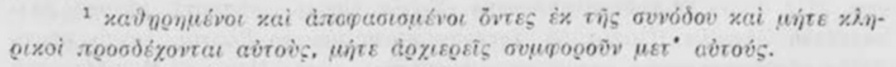 1. Архиепископитѣ: Гавриилъ отъ Янина, бившъ дяконъ на християнополския митрополитъ; Аврамий, бившъ новопатраски митрополитъ; Мелетий, бившъ софийски митрополитъ ; митрополититѣ: пелагонийски Йеремия отъ сѣрското село Ежово, драчки Харитонъ отъ Амбрачио.