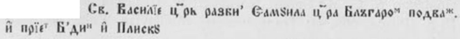 и т. н. 3) въ припискитѣ къмъ старобългарския преводъ на Манасиевия лѣтописъ (Йор. Ивaновъ Български старини изъ Македония 2. изд. София, 1931, 623):