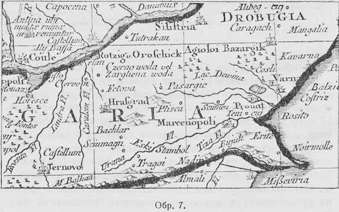 свѣтъ презъ 17 и 18 в. Обстоятелството, че името па Плиска е дадено въ правилната форма Plisca и че нейното географско мѣстоположение е посочено съвършено вѣрно, показва, че означаването на този градъ въ географскитѣ карти отъ 17 и 18 в. не стои подъ влияние на четени византийски хроники, a почива на нови, съвременни сведения и наблюдения. Пo всѣка вѣроятность Плиска е станала известна на западния свѣтъ презъ тази епоха или отъ похода на Владиславъ Варненчикъ, или отъ сведенията на католишката пропаганда въ Източна България или най-сетне отъ търговскитѣ връзки на дубровничани и италиянци съ нашето Черноморско крайбрѣжие.