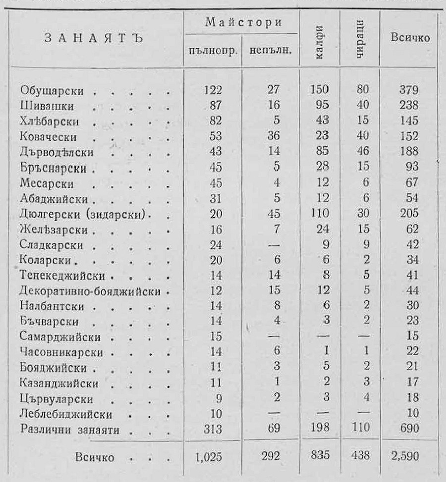 или, по-добре казано, сѫ показвали до преди нѣколко години известна концентрация относно мѣстото за извършването на работата. Така че единъ и сѫщи занаятъ се съсрѣдоточава по цѣлата улица, както е напр. случаятъ съ казанджии, абаджии, куюнджии, кюркчии, обущари, леблебиджии и т. н.
