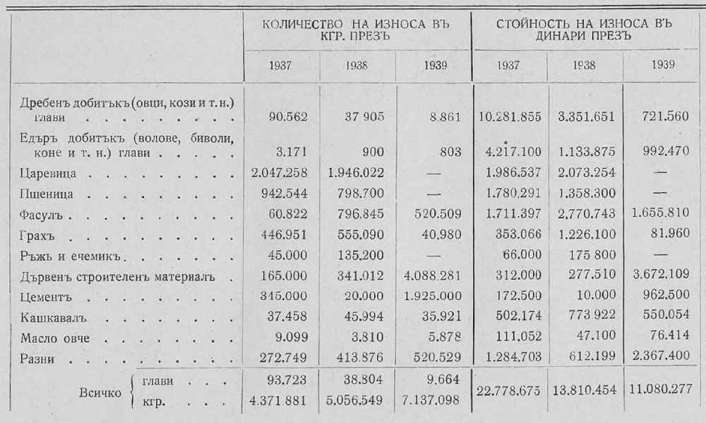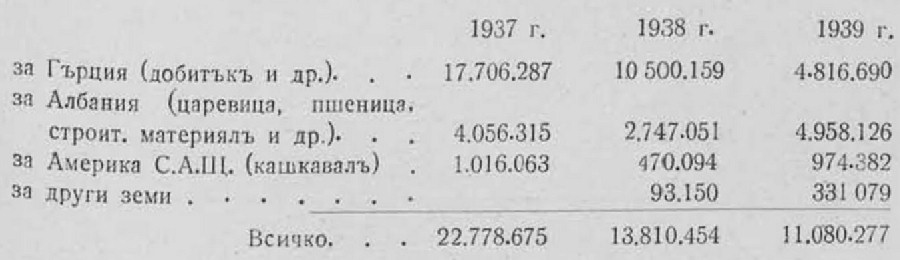 Презъ последнитѣ години сѫ изнесени въ чужбина стоки въ следната стойность въ динари: