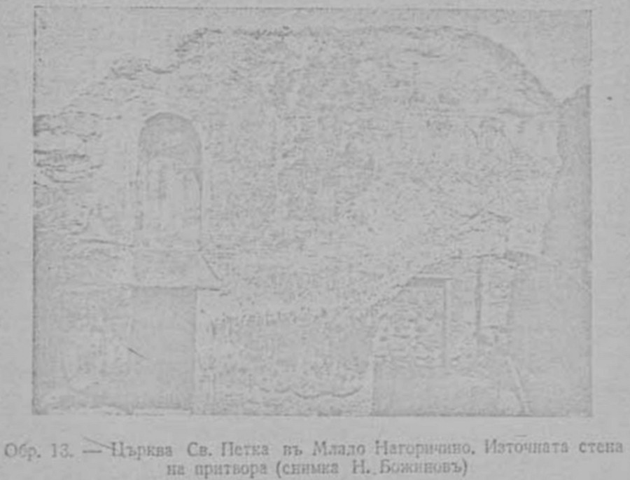 Обр. 13. — Църква Св. Петка въ Младо Нагоричино. Източната стена на притвора (снимка Н. Божиновъ)