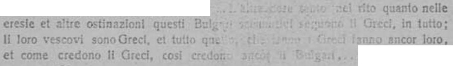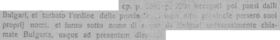 39. Acta Bulgariae, p. 68: A me è parso bene di toccare prima brevemente sino dove si estende questi tempi la Bulgaria, per dar d'intendere alli leggenti la grandezza del regno e la pochezza delli cattolici, che si trovanno in esso...