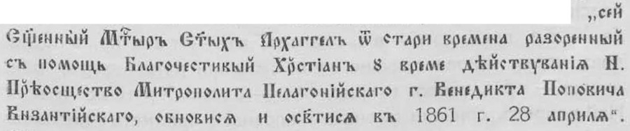 Всички смѣтки, които църковнитѣ епитропи водили, презъ първата половина на миналия вѣкъ, сѫ на български, и само завѣркитѣ на Пелаганийския митрополитъ сѫ на гръцки езикъ. Когато по-късно, преди още общината да се отдѣли отъ гръцката патриаршия, по порѫка и съдѣйствието на гръцкия Пелаганийски митрополитъ Венедикта билъ възобновенъ варошкия мънастиръ „Св. Архангелъ Михаилъ", то възобновителитѣ поставили на главнитѣ мънастирски врати каменна плоча съ следния славянобългарски надписъ: