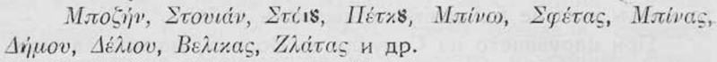 Тѣзи имена на воденски герои въ гръцкото възстание, както и имената отъ цитата подъ бел.1і-а, по единъ своеобразенъ начинъ почтениятъ авторъ гръкъ посочва за гьрци, както и всичко македонско за гръцко. А пькъ на стр. 372, покрай друго, казва, че измежду балканскитѣ християнски народи само българитѣ, като доленъ и простъ народъ, не сѫ се отзовали на апела за възстание на гръцкия революционеръ Ригасъ Фереосъ, апелъ съдържанъ въ преведената на френски отъ г. Колокотронисъ гръцка народна пѣсень :
