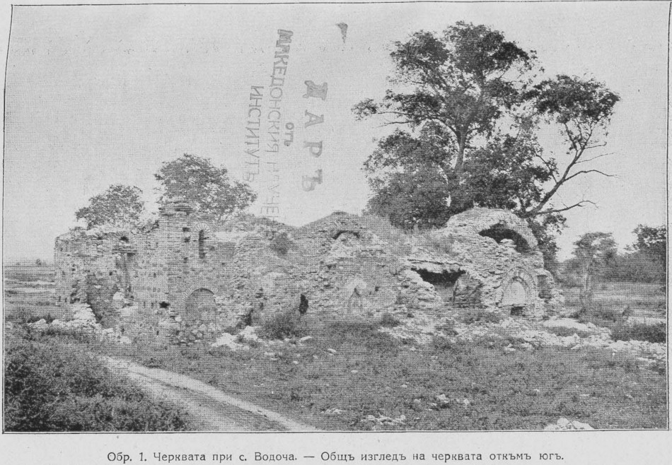 1. Миналото лѣто, когато Госп. Проф. Окуневъ бѣше дошелъ отъ Прага въ България по изучване на нашитѣ християнски старини, азъ му обърнахъ вниманието, понеже имаше намѣрение да иде и въ Югослявия, върху Водочката черква, като му показахъ и своитѣ фотографични снимки.