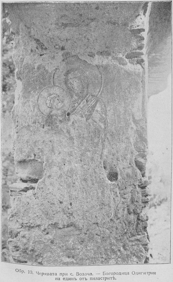 Обр. 10. Черквата при с. Водоча. — Богородица Одигитрия на единъ отъ пиластритѣ.