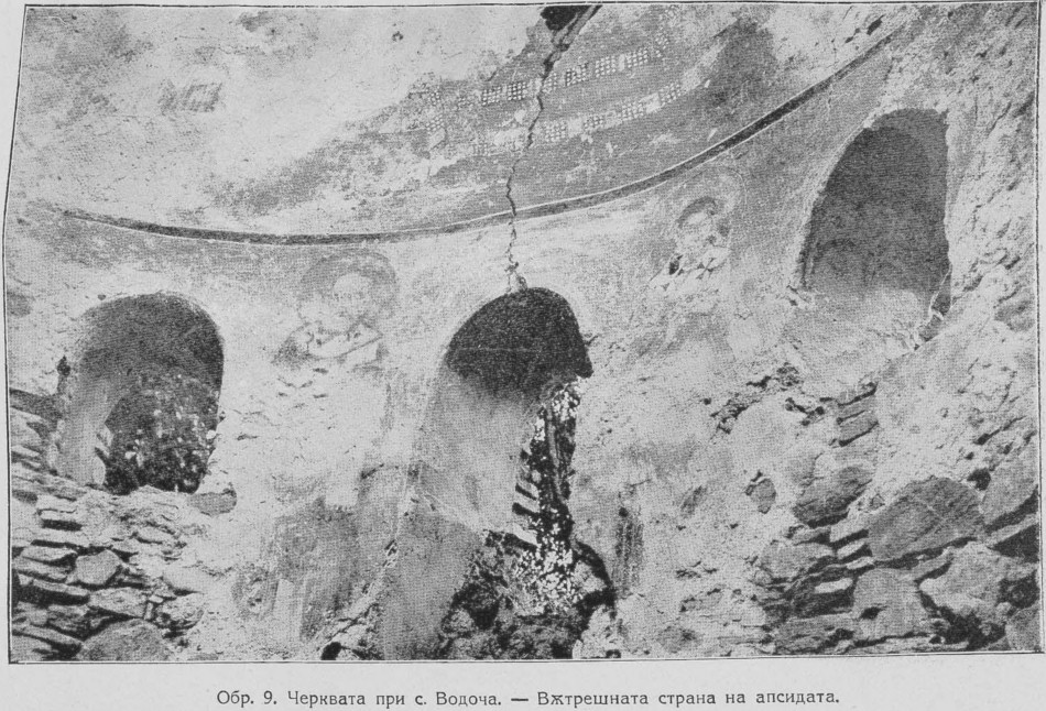 Обр. 9. Черквата при с. Водоча. — Вѫтрешната страна на апсидата.