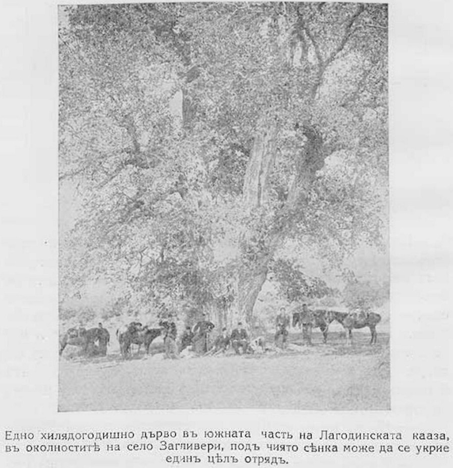 Едно хилядогодишно дърво въ южната часть на Лагодинската кааза, въ околноститѣ на село Загливери, подъ чиято сѣнка може да се укрие единъ цѣлъ отрядъ.