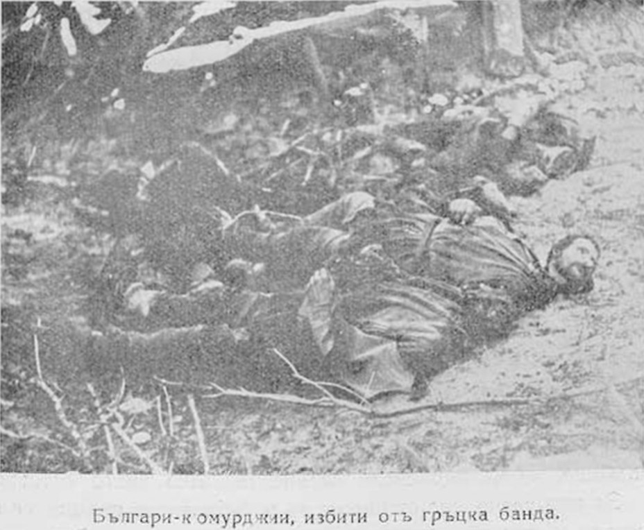 всичкитѣ работници кюмурджии, изкарали ги навънъ и съ ятагани ги насѣкли на парчета. Само единь сполучилъ съ едно ножче да прерѣже вѫжето на себе си и на своя другарь, та двамата избѣгали подъ обстрелването на андартитѣ и дошли въ Катерина направо при мене. Азъ ги изпратихъ при каймакамина и сѫщевремено заповѣдахъ на ротния командиръ на жандармерията да назначи нѣколко конни жандарми, понеже и азъ искамъ още веднага да отида на мѣстото на произшествието.