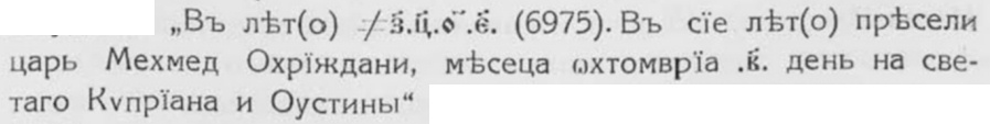 Къмъ сѫщата 1466 г. отнася събитието и една приписка къмъ рѫкописъ отъ библиотеката на Хлудова :