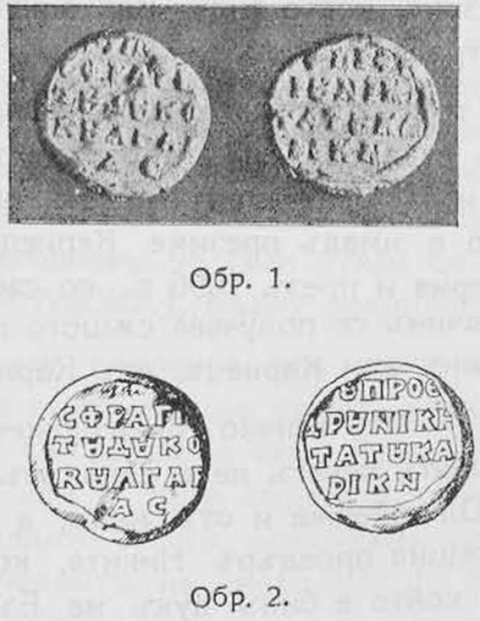 Въ Македонски Прегледъ год. III, кн. 1, 1927 г. стр. 71 след. издадохъ три оловни печата на архиепископитѣ Теофилактъ [1] и Константинъ и епископъ Стефанъ, всички отъ XI в. Както казахъ и въ споменатата статия, заедно съ тия три печата, които се намиратъ въ виенския Народенъ музей, покойниятъ директоръ Мюнстербергъ ми бѣ изпратилъ още петь други отпечатъка отъ оловни печати съ значение за българската история. Обаче тѣзи печати не можахъ да прочета на времето, за да ги обнародвамъ заедно съ другитѣ три. Отъ тогава до сега следъ многократни подкачвания и прекѫсвания да се занимавамъ съ тѣзи печати най-сетне можахъ да успѣя да прочета надписитѣ и да ги проуча.