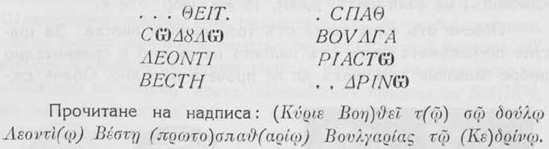 и за това, че съ моето издание тукъ се поправя и една, макаръ и малка, грѣшка въ прочитането на надписа. Шлюмберже чете